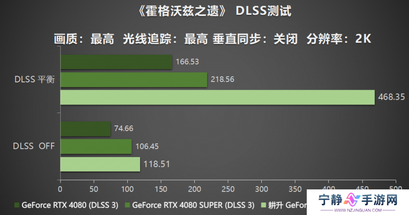 《霍格沃兹之遗》同样作为一款光线追踪游戏,也拥有高要求的硬件需求。在2K分辨率下,耕升 GeForce RTX 5080 追风在启用DLSS 4技术后甚至能够跑到超过450帧的惊人分数,这样的表现充分满足以2K分辨率游玩的玩家。
