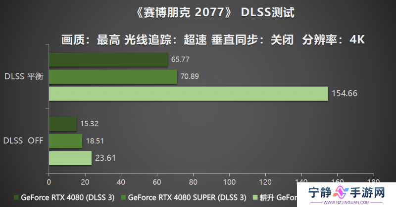 而在4K测试中,耕升 GeForce RTX 5080 追风更是拥有平均154.66帧的表现,比GeForce RTX 4080 SUPER的70.89帧有着近118%的提升。由此可见,即便是在《赛博朋克 2077》这款光追游戏中,DLSS 4技术带来的性能提升远比DLSS 3要更为显著,让玩家能够以更高的帧数在高分辨率下畅玩,同时还能享受到光线追踪技术全开的画面表现。