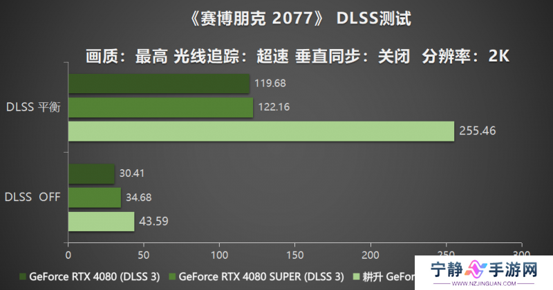 从2K测试中可以看到,耕升 GeForce RTX 5080 追风借助NVIDIA DLSS 4技术,能够获得高达255.46帧的平均帧数,相比采用NVIDIA DLSS 3技术的前代两款显卡均有超过100帧的提升。