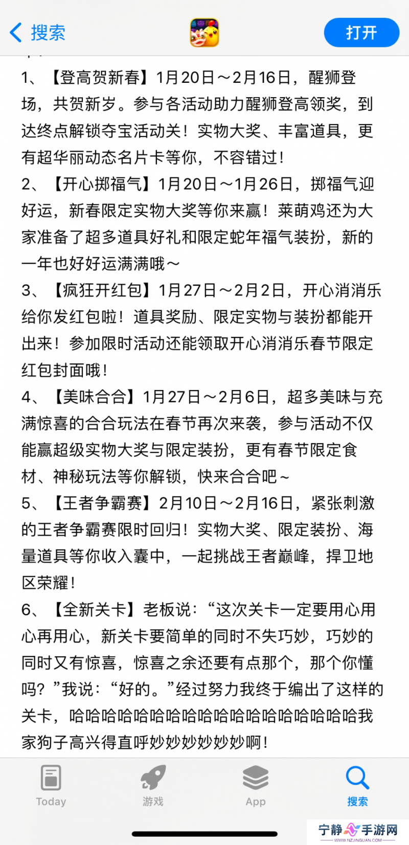 当然啦,如果你也想感受一番恋爱脑程序员的真诚与匠人精神,欢迎前往《开心消消乐》体验其正在进行中的春节活动。也期待你在体验过后,在社交媒体上分享你不一样的见解。