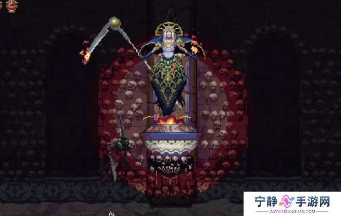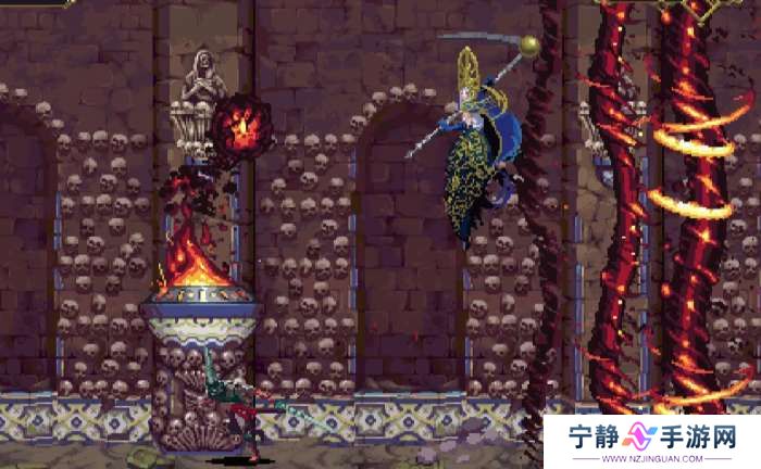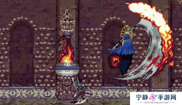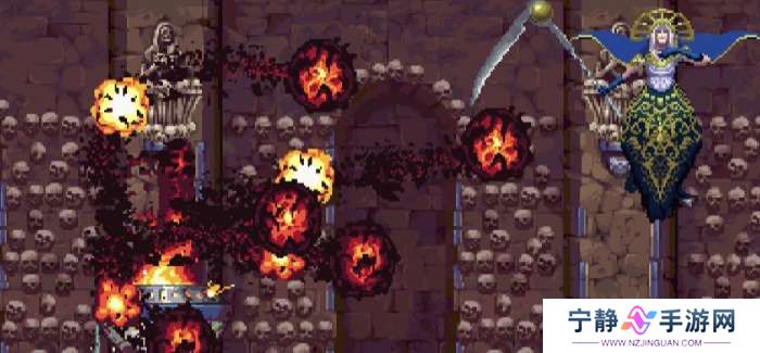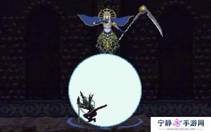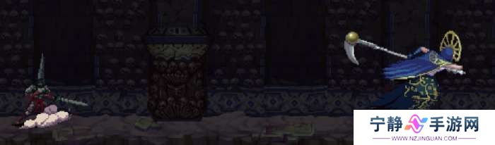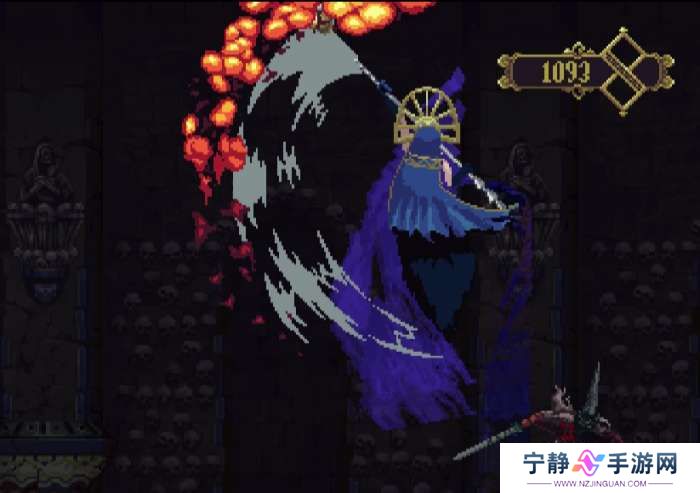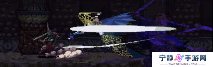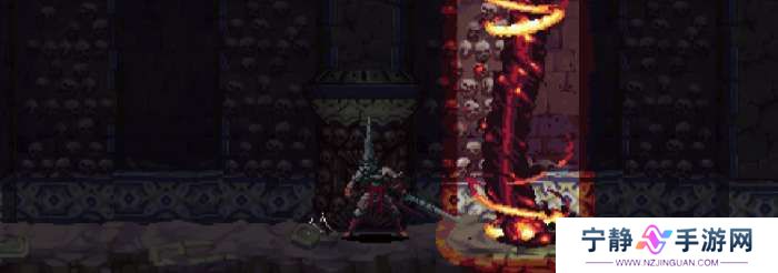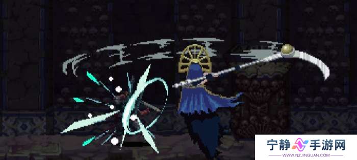 ②火焰斩,BOSS拖着镰刀缓慢朝主角飞来,镰刀上有火焰,靠近主角时镰刀上挑。