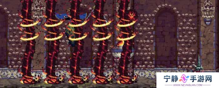 镰刀上挑后,BOSS的攻击方向上会出现三道密集火柱,然后BOSS会缓慢下降。