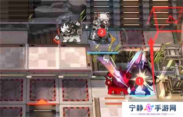 - 按照上图所示位置部署煌和塞雷娅。煌朝上部署,塞雷娅位置如图所示。 部署完成后,基本可以挂机等待通关。 塞雷娅的治疗和煌的输出足以应对关卡中的所有挑战。
