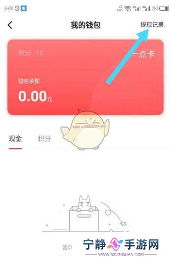 3、打开我的钱包后,点击右上角的提现记录。