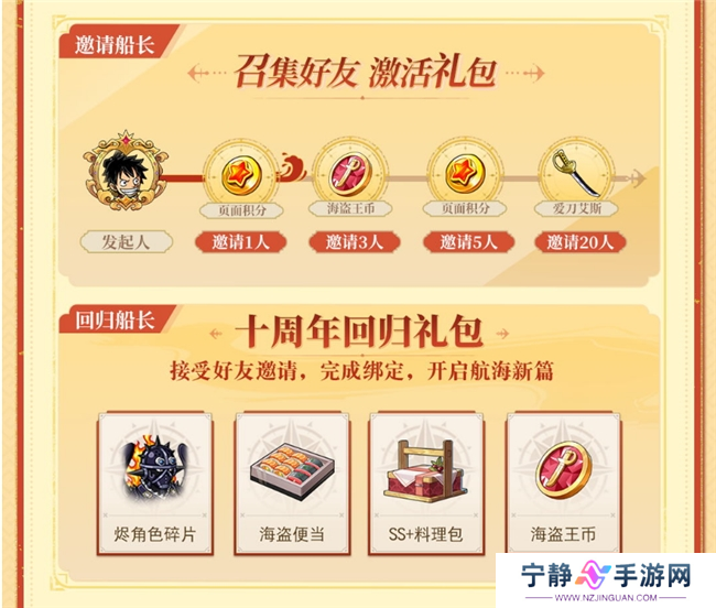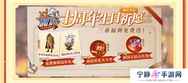 以上就是《航海王启航》十周年庆典的活动介绍,福利当然不止这些,还有超多活动奖励等待玩家进游戏探索!想要了解更多资讯可登录《航海王启航》官网或关注官方公众号查询!