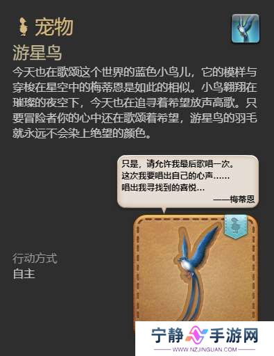 最终幻想14游星鸟是一只人气很高的小蓝鸟宠物,有玩家不知道游星鸟要怎么获得?它是在最终幻想末世终迹副本中获得的,成功击败拉啦后就可以开宝箱拾取了,接下来就由小编给大家带来了详细的《最终幻想14:水晶世界》游星鸟宠物获得方法!