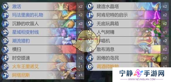 口德的核心构筑只有12张牌(建造水晶塔、沉静的吹笛人、伴唱机、潮流猎豹、时空提速、火车王里诺艾以及阿塔尼斯),而剩余的16个卡位则主要围绕两个大方向展开:提速与过墙。