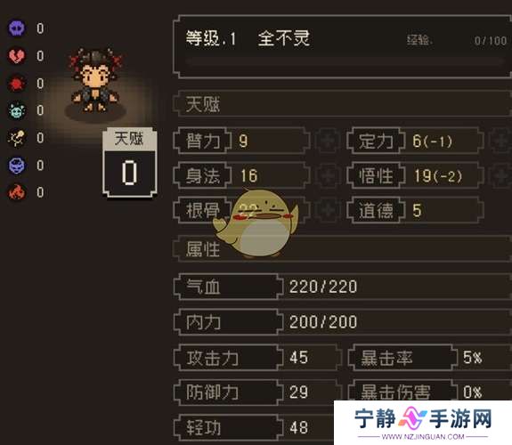 全不灵的剑道、拳掌属性适合学习,可以学会害风剑法和真踩脚趾两大技能,输出都很不错。另外他还有独特的盗术天赋,在中后期窃取敌人的物品以及破解部分谜题机关时很好用。酒艺的属性非常高,因此在部分剧情和战斗中可以发挥奇效。