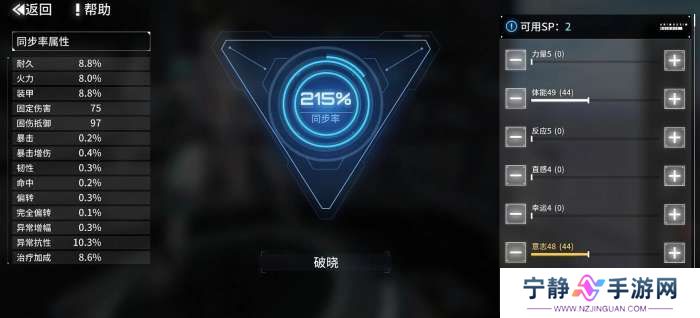 以Dawn为例,根据身体健身44+的方式添加点,您可以获得215的同步率。