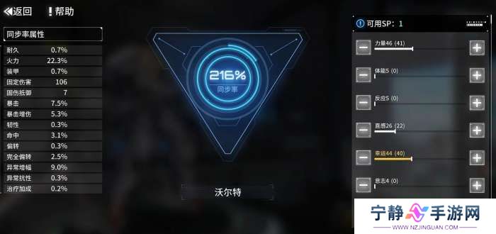 以沃尔特为例,根据Power 41+直觉22+幸运40,同步率可以达到216