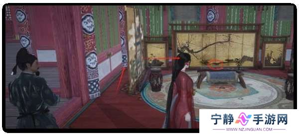 2、进屋后然后就可以右转然后走到底,可以看到屏风然后掌中宝就在屏风后了就可以看到了。