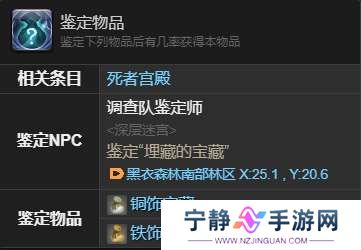 去黑衣森林南部林区 X:25.1 , Y:20.6.鉴定铜饰宝藏、铁饰宝藏,获得铁饰宝藏。