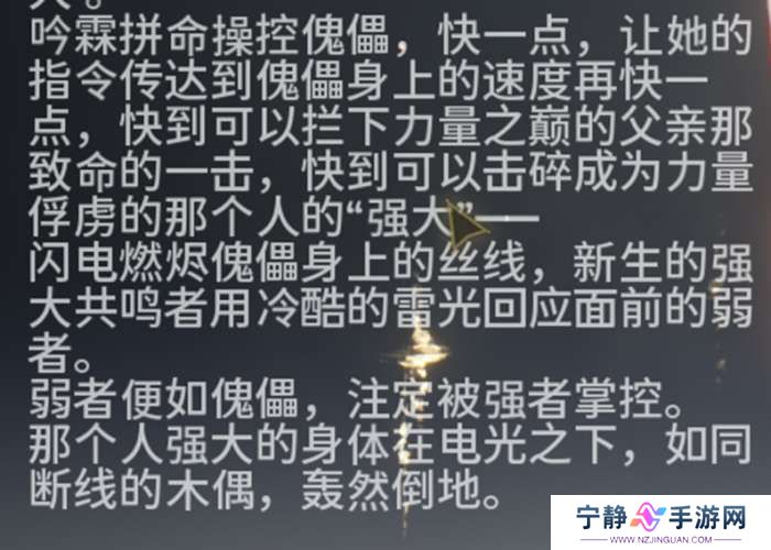 最后,闪电从指尖爆发,取代了链接的木偶的丝线,并与木偶重新连接。 Ling Xun的Lei Guang回应了她父亲的期望。她终于在父亲的眼中变成了强大的表情,但不幸的是,这种用力使用的是父亲,父亲像在他面前的木偶一样跌落在地。