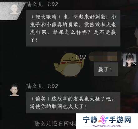 在燕云十六声中陆幺儿是一个小孩可以在醉花阴屋子进行对话,陆么儿看了不少奇怪的话本,也想成为作家,玩家可以与他玩一玩故事接龙,根据他给的题材续写故事就行,比如让森林的小兔子拿上老人的叶子就行。那么下面就让小编带着大家一起来看看吧。