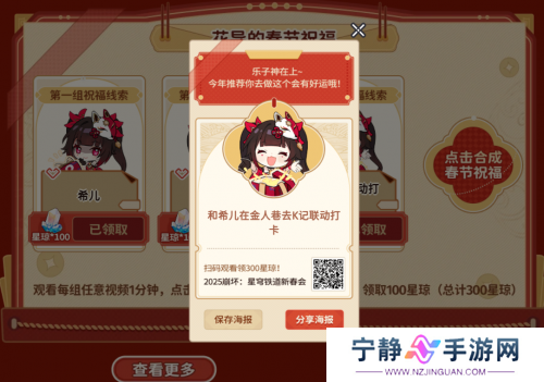 在活动期间,玩家可以选择每天领取固定的100星琼奖励,抑或是选择领取50星琼,但有可能获取600和50万星琼的选项。