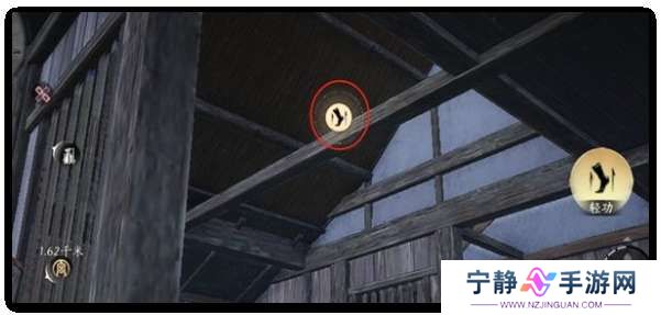 2、在屋内的房梁上然后就需要我们从床上跳到柜子上这时候再跳上房梁即可。