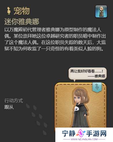 最终幻想14迷你雅典娜人偶小小的一只十分可爱,会跟从我们行动。那么迷你雅典娜宠物怎么获得呢?我们要去万魔殿-荒天之狱4击败雅典娜获得,接下来就由小编给大家带来了详细的《最终幻想14:水晶世界》迷你雅典娜宠物获得方法!