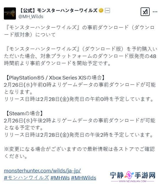 《怪物猎人:荒野》详细预加载和解锁时间公布 主机版率先解锁